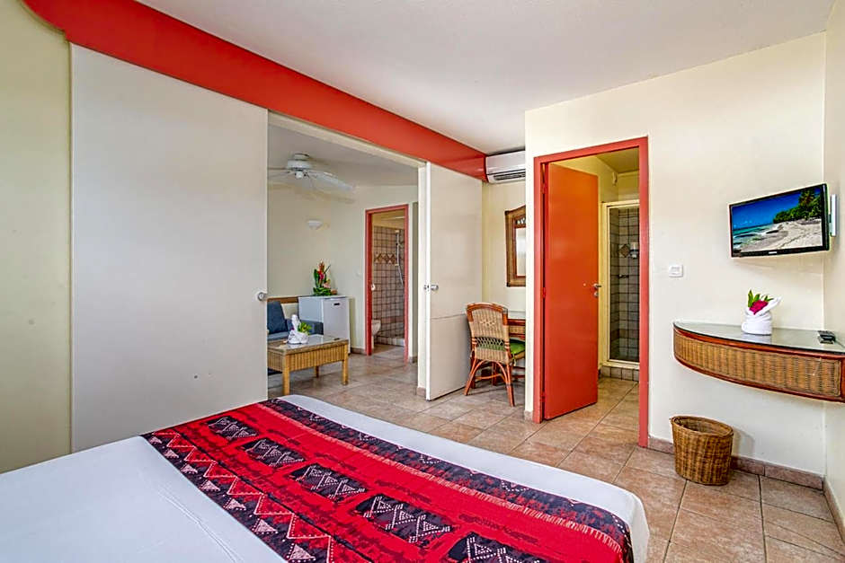 This stylish air-conditioned apartment has bright décor and features a bedroom, a living area with a TV and a modern bathroom with free toiletries and a hairdryer. The kitchenette includes a hot plate, fridge and kitchenware, and the dining area opens onto the gardens.